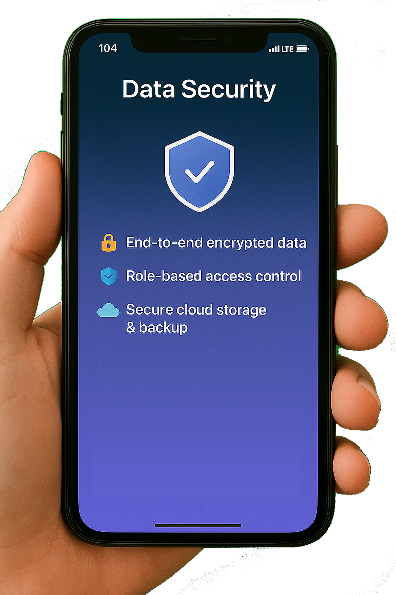 All your data is encrypted and stored securely on cloud servers. Only authorized users can access information based on defined roles.